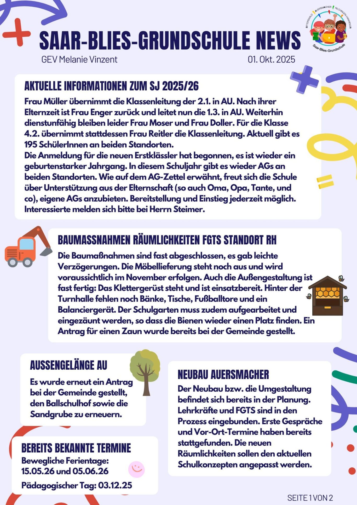 hiermit darf ich Ihnen das neue Schulloge der Saar-Blies-Grundschule vorstellen. Nach langem Entstehungsprozess und mehreren Entwürfen hat die Schulkonferenz gestern dem neuen Logo zugestimmt. Dies wird fortan alle schulische Schreiben schmücken und in naher Zukunft auf den Schildern am Schuleingang oder auf den Schul-T-shirts zu sehen sein.