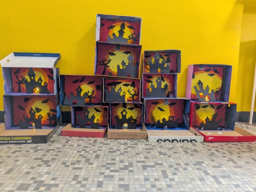 Die Kinder der Klasse 3.1 bastelten „Halloween in der Kiste“. Dabei sind viele tolle und fantasievolle Werke entstanden, die man hier entdecken kann.