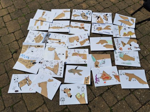 So wurde aus der Lesung ein kreativer Workshop, bei dem Lesen, Zuhören und Gestalten wunderbar zusammenkamen. Zum Abschluss durften die jungen Künstlerinnen und Künstler ihre eigenen Werke erstellen. Die Ergebnisse waren ebenso vielfältig wie die Kinder selbst: fantasievoll und richtig seltsam im besten Sinne!